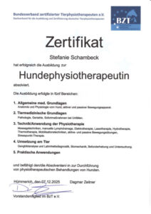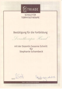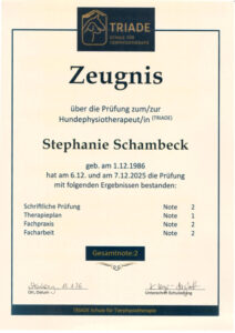 Ich bin Stephanie Schambeck und begleite Ihren Vierbeiner mit Herz und Fachwissen zu mehr Bewegungsfreude.